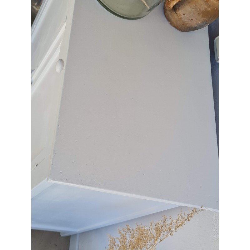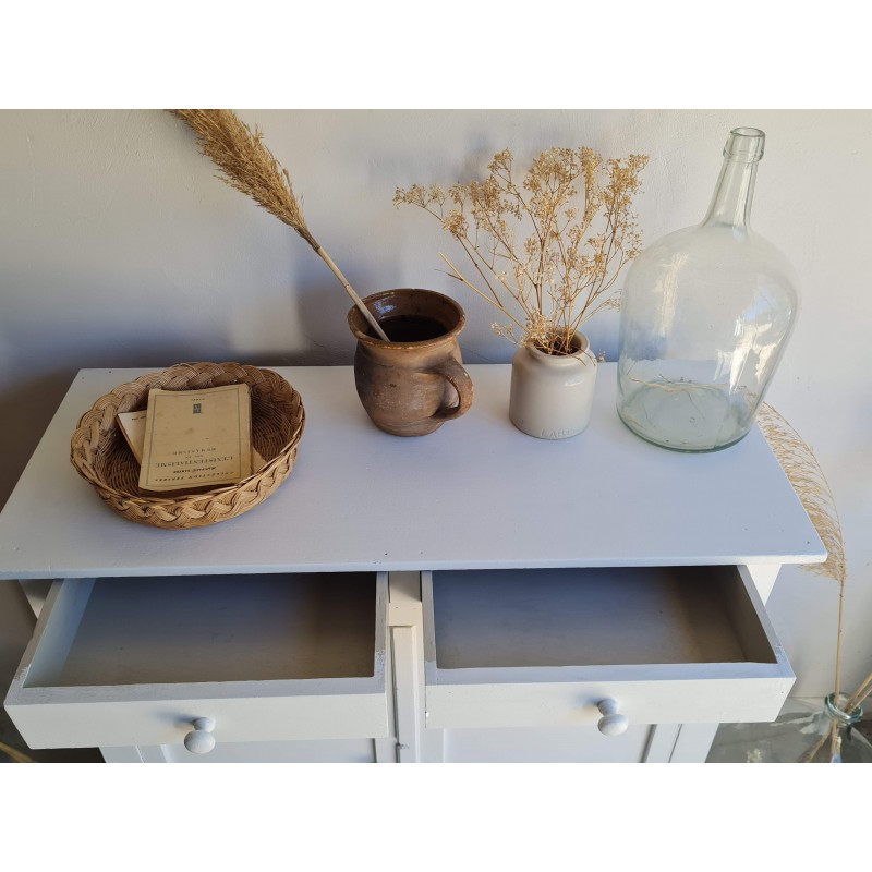 Des petites imperfections visibles sur les photos. Les tiroirs coulissent bien. Stable.