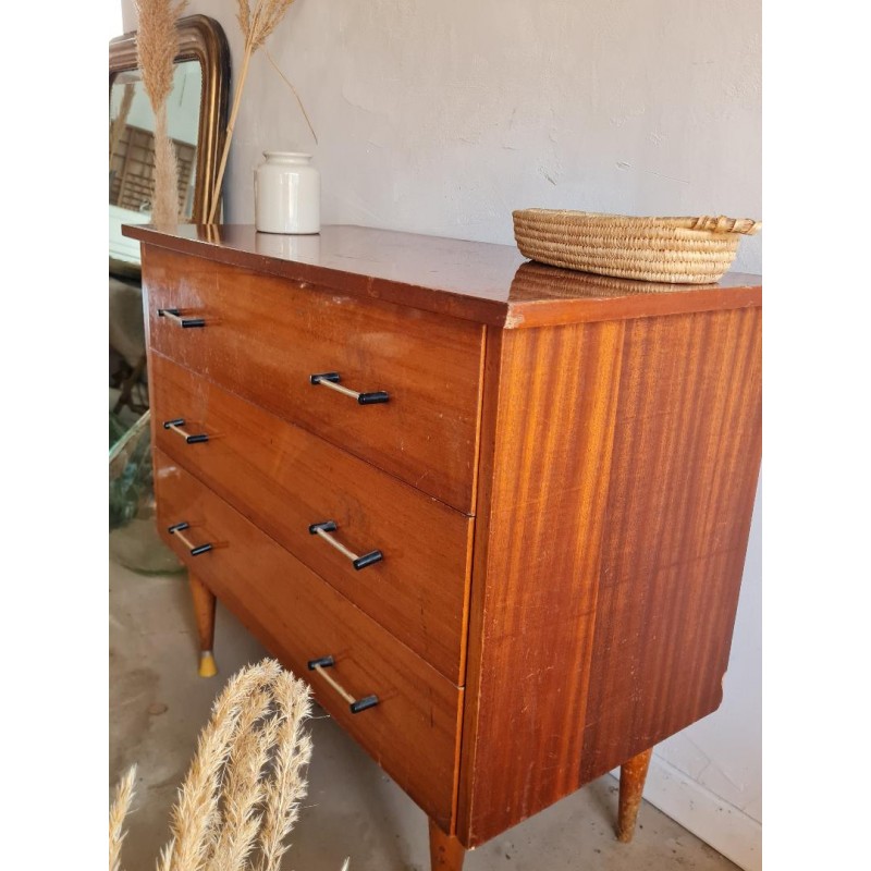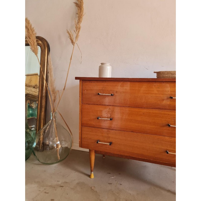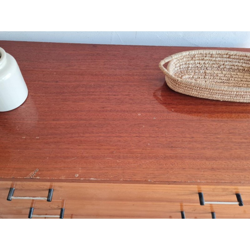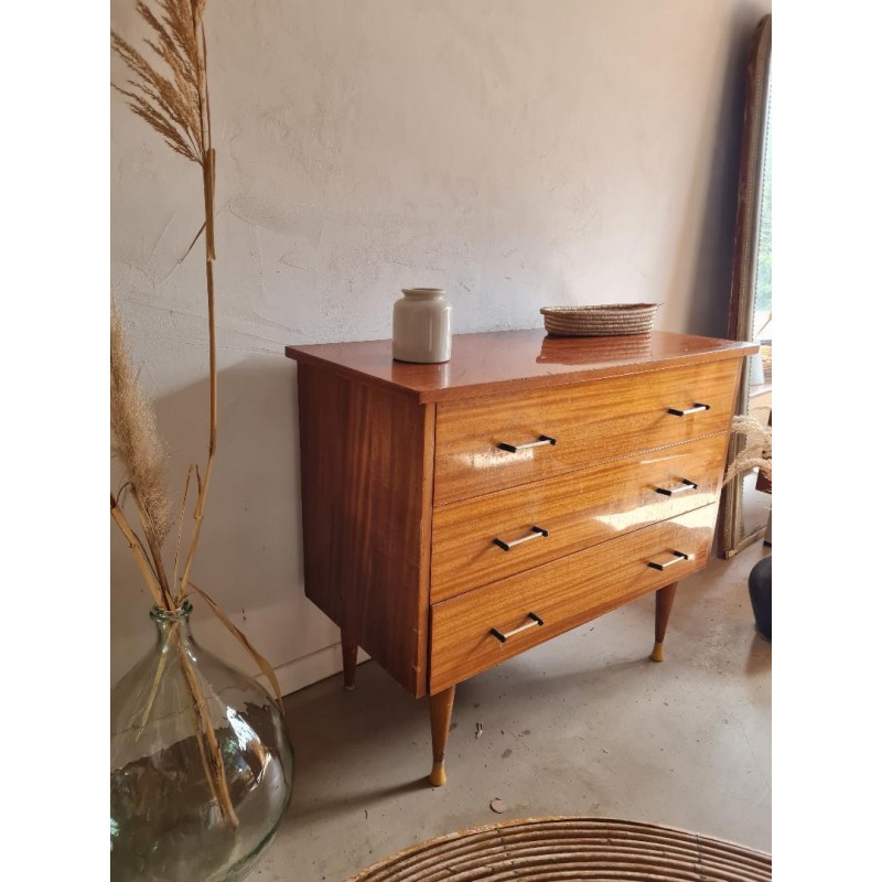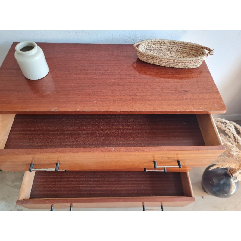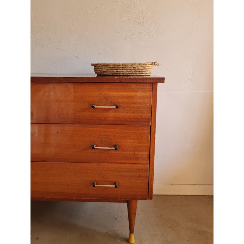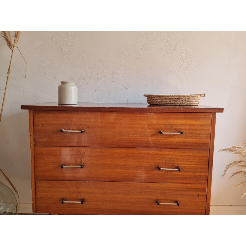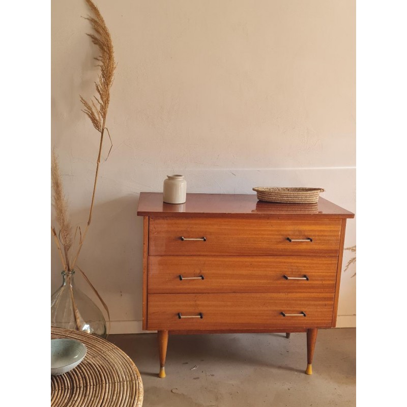 Commode années 60. Belle patine, chouettes poignées., piètement sympa. Des imperfections visibles sur les photos. Les tiroirs coulissent bien. Très belle touche vintage dans un intérieur contemporain.
