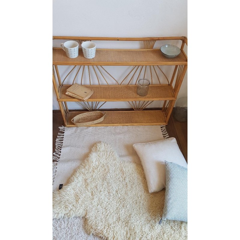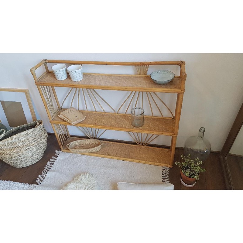 Grande triple étagères en rotin,vintage . A accrocher au mur ou à poser au sol (esprit petite bibliothèque).