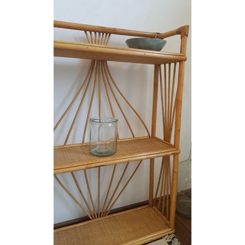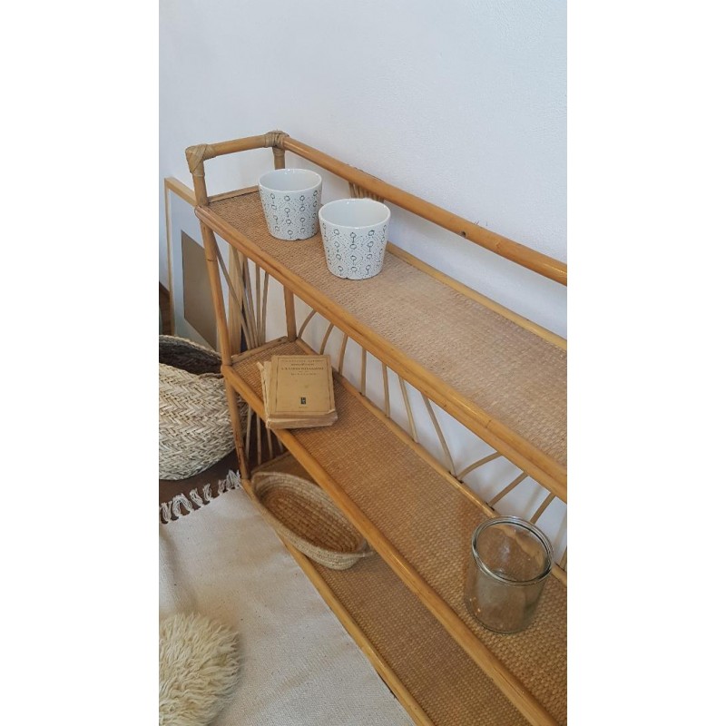 Grande triple étagères en rotin, vintage .