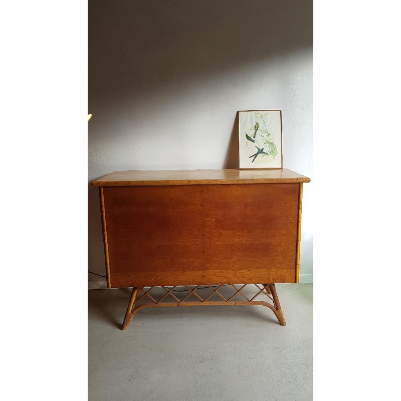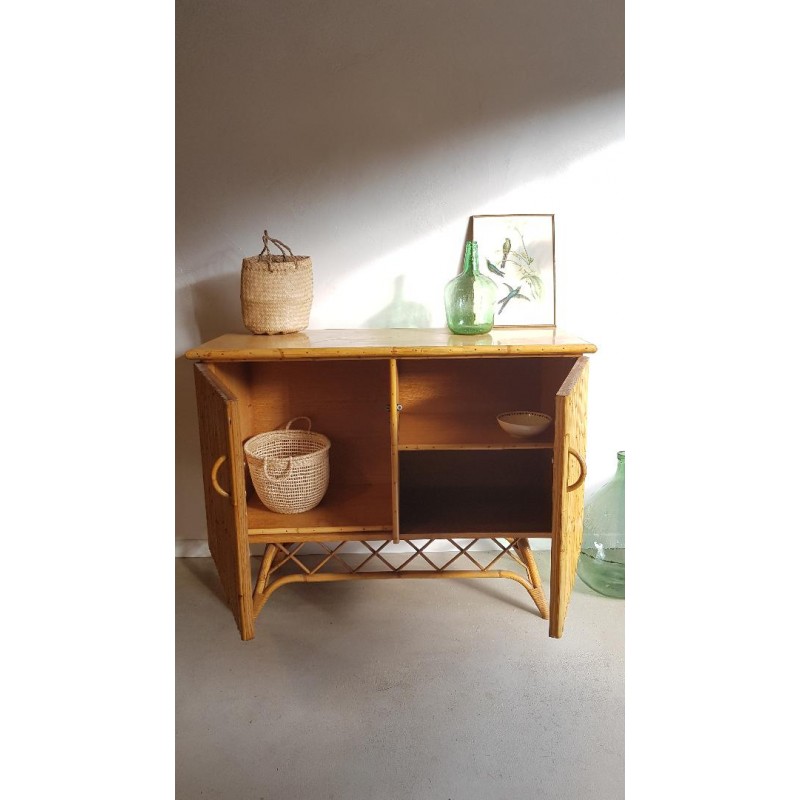 Superbe buffet - bar en bambou rotin et osier circa années 60. Pieds compas. Magnifique patine miel doré à faire pâlir une pinterest addict ;-).