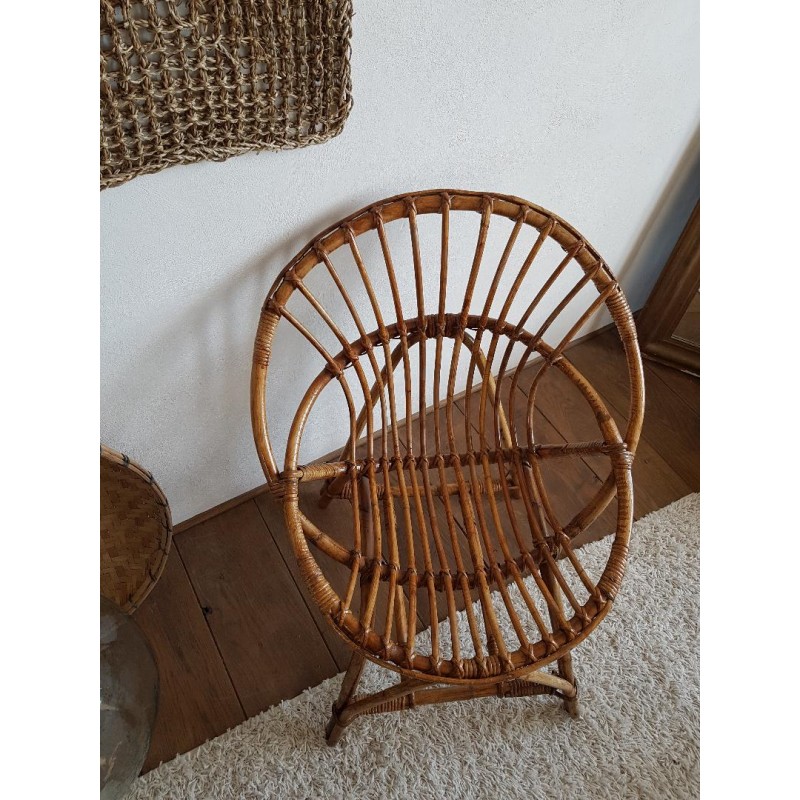 Fauteuil coquille rotin vintage
