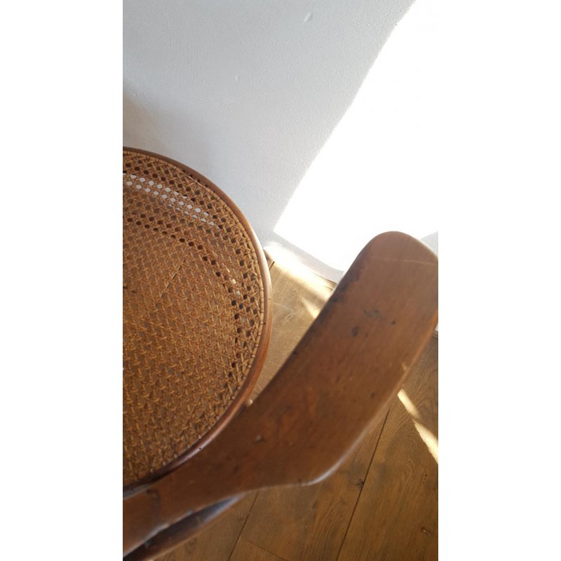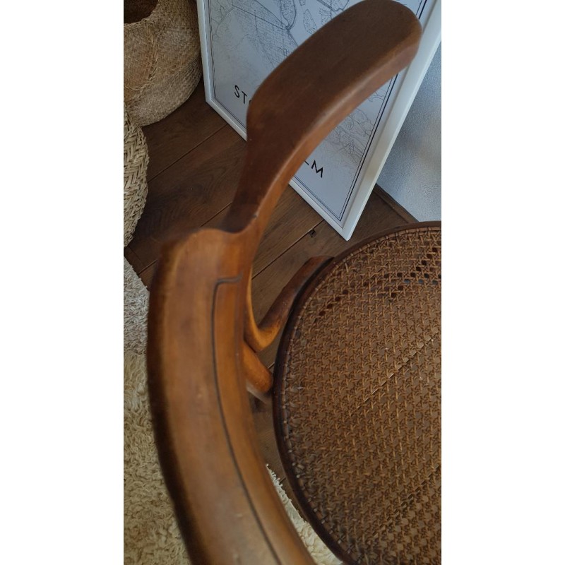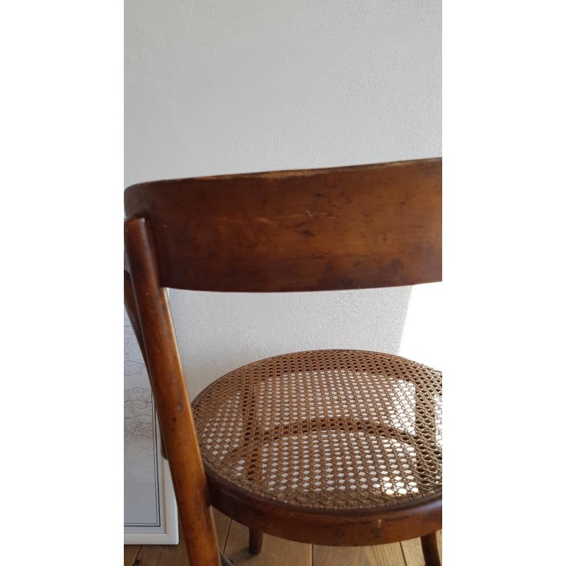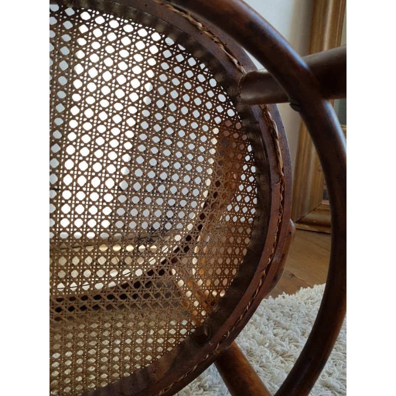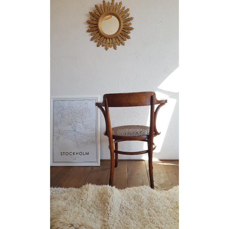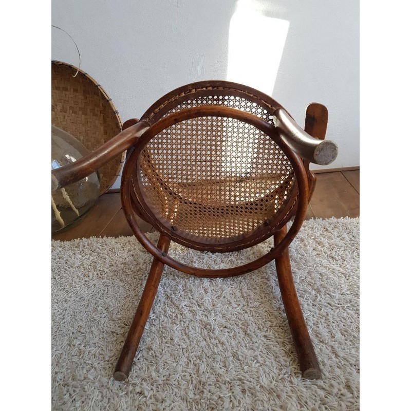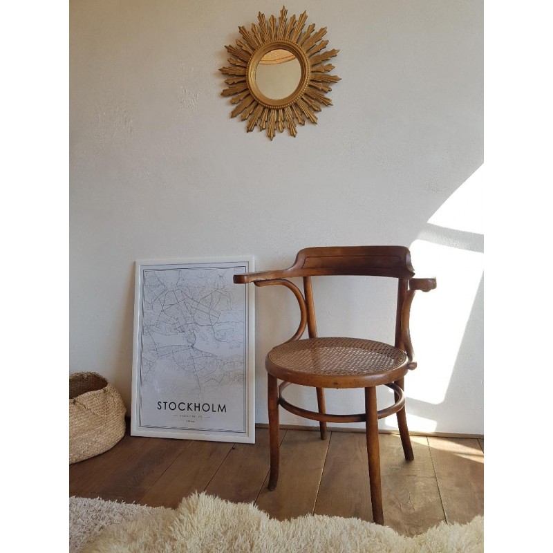 Fauteuil Fischel canné vintage. Superbe patine, bon état du cannage, un léger jeu à signaler. Beau travail de bois courbé pour ce concurrent si prisé de Thonet.