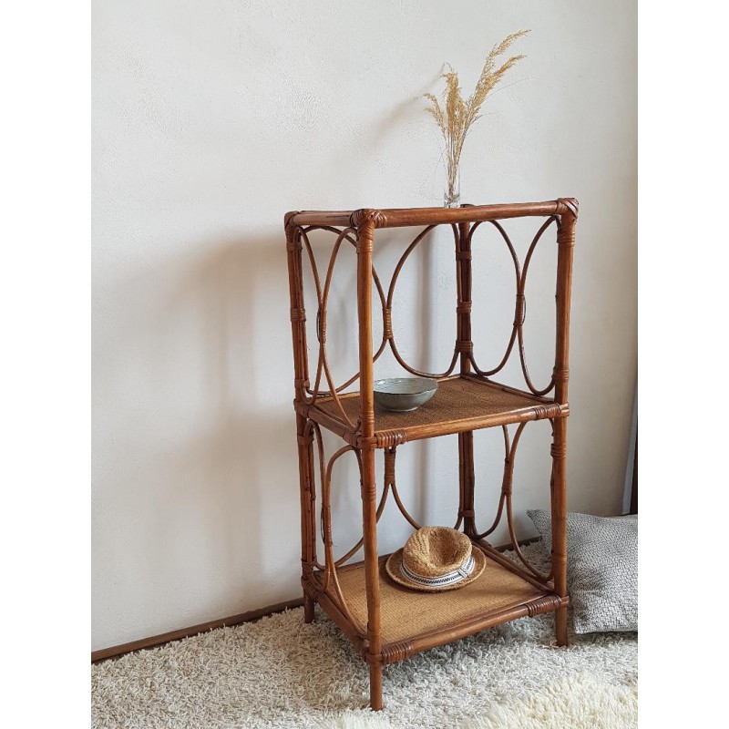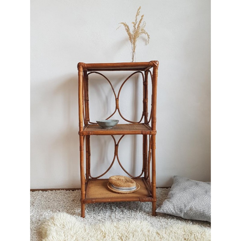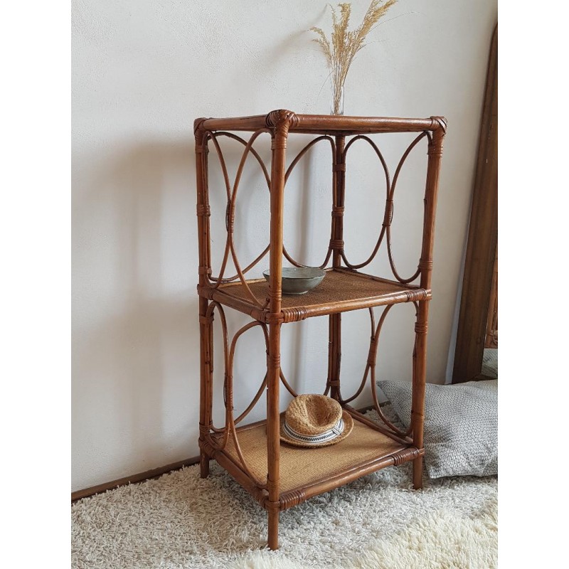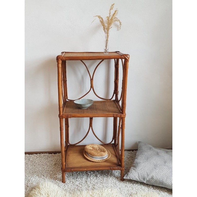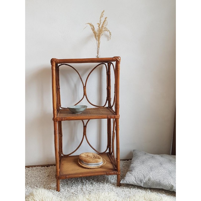Etagères - petite bibliothtèque en rotin vintage. Trés jolie patine.
