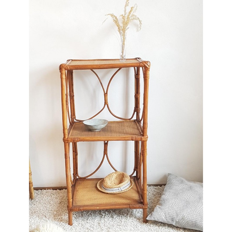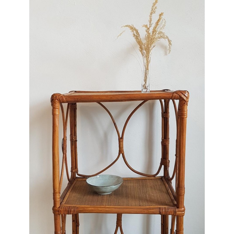 Etagères - petite bibliothtèque en rotin vintage. Trés jolie patine. Excellent état pour ce petit meuble circa années 60.