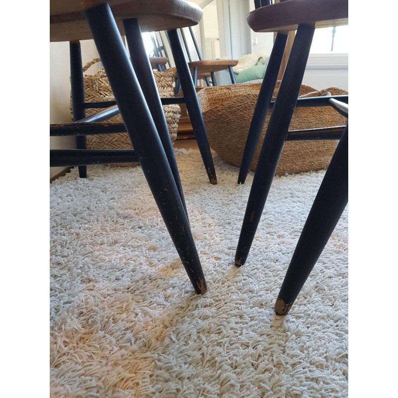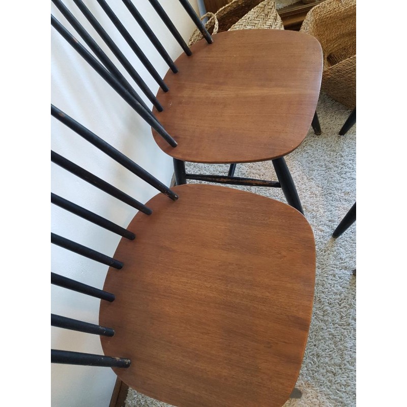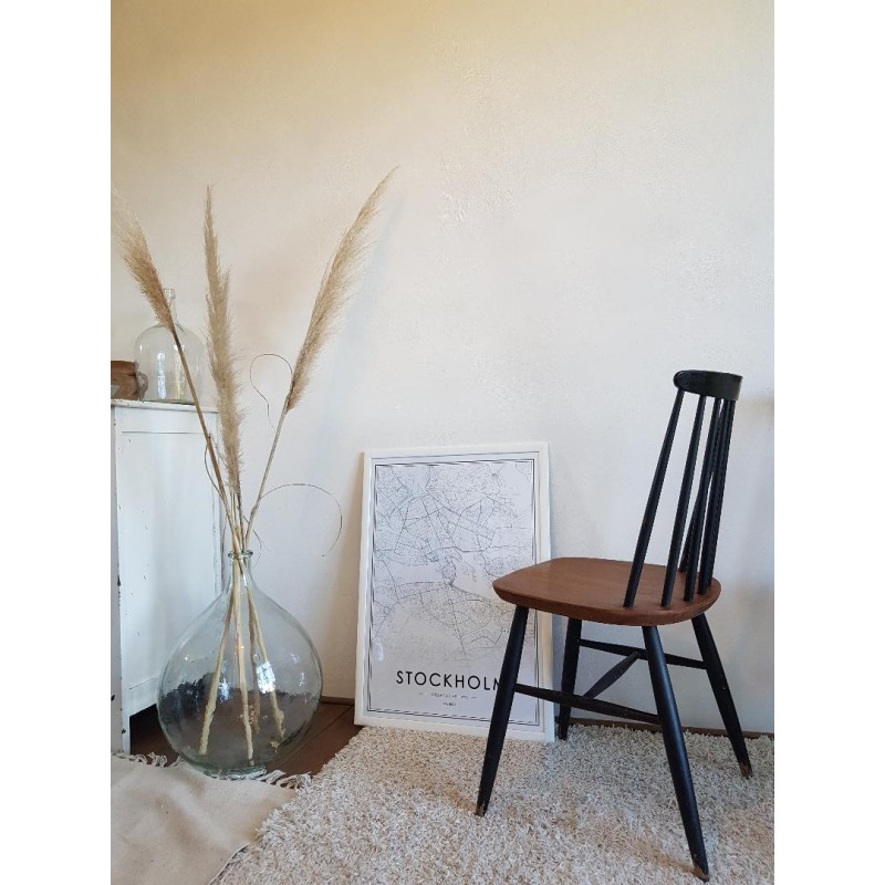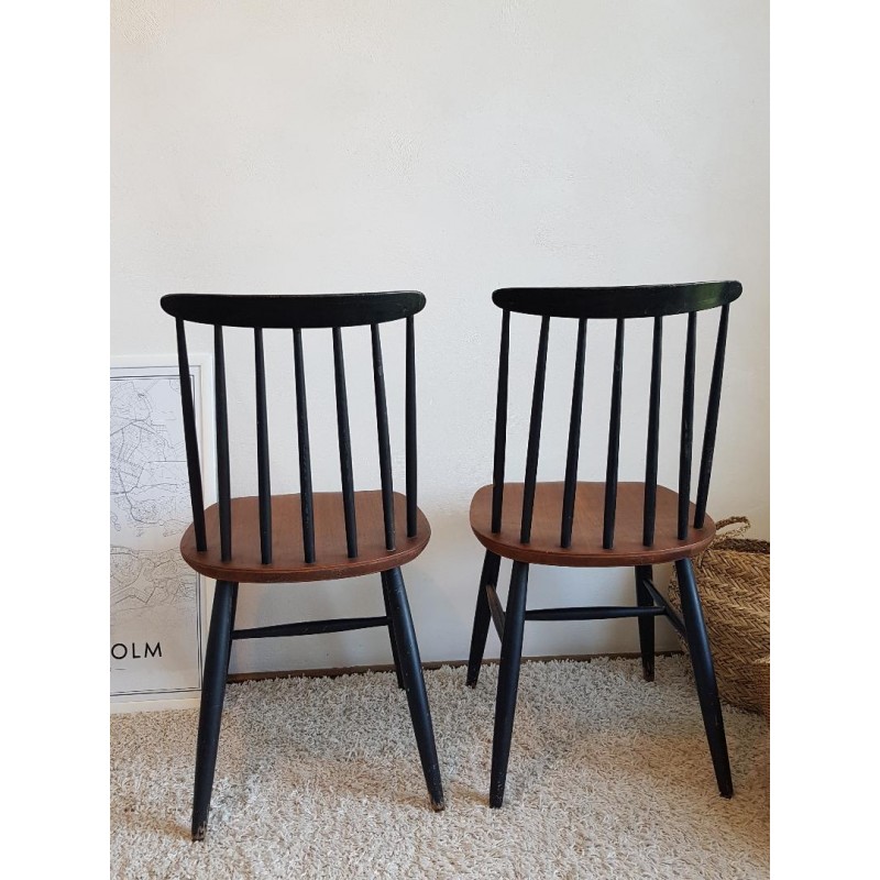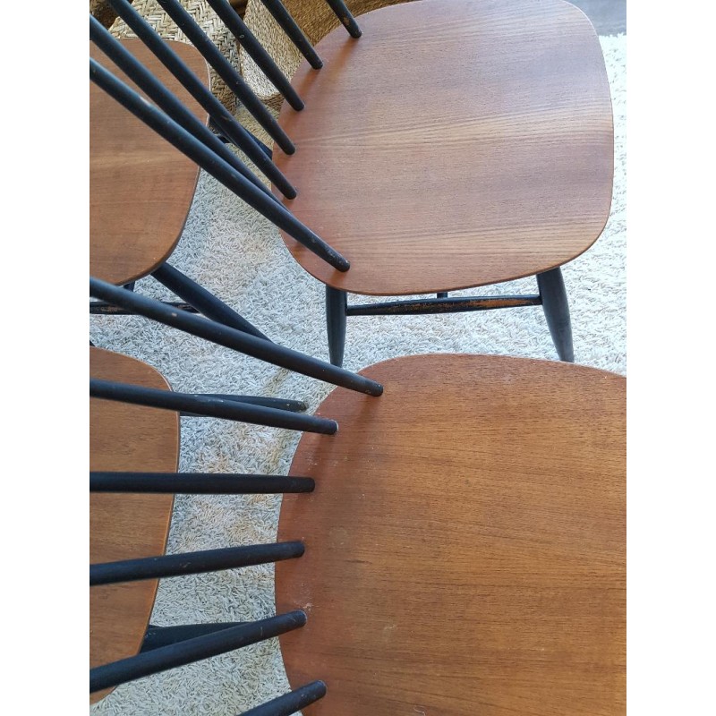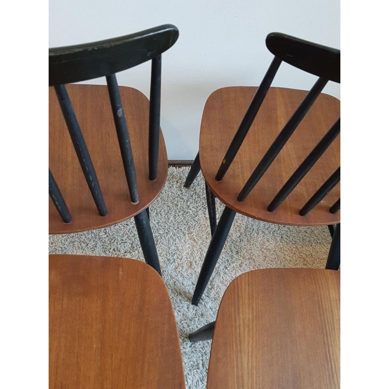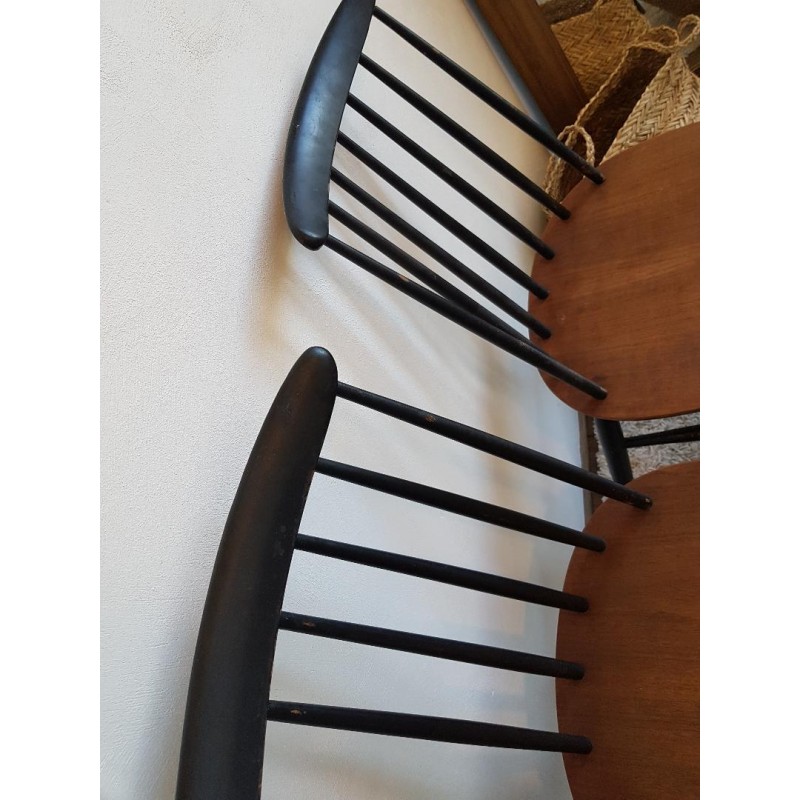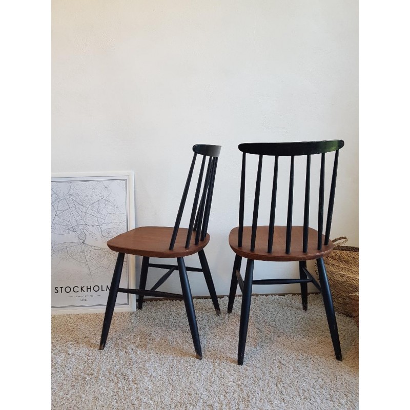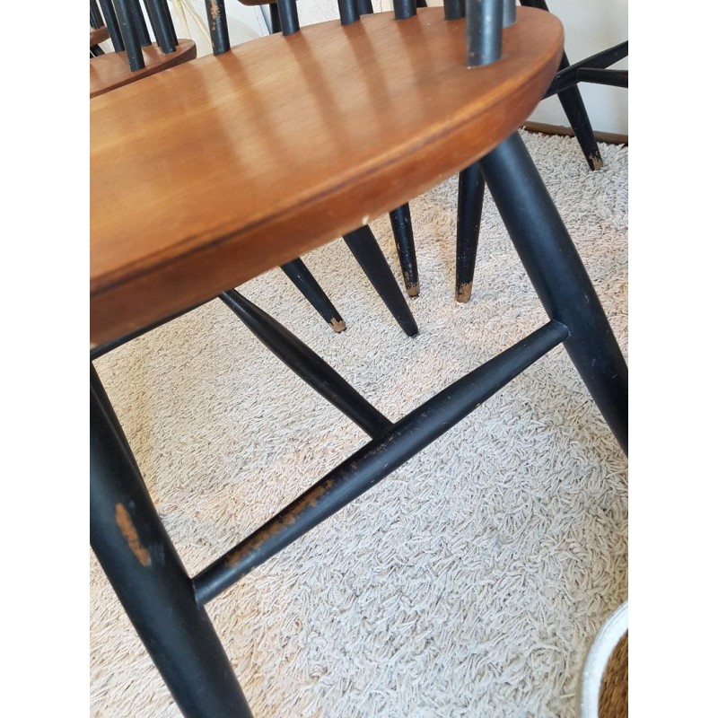 Suite de 6 chaises années 60 dans l'esprit du modèle Fannet de I.Tapiovaara. Stables. En bon état général . Quelques traces usuelles (cf photos) comme par exemple la peinture noire d'époque qui est "used" à certains endroits ce qui participe à la belle patine de l'ensemble.
